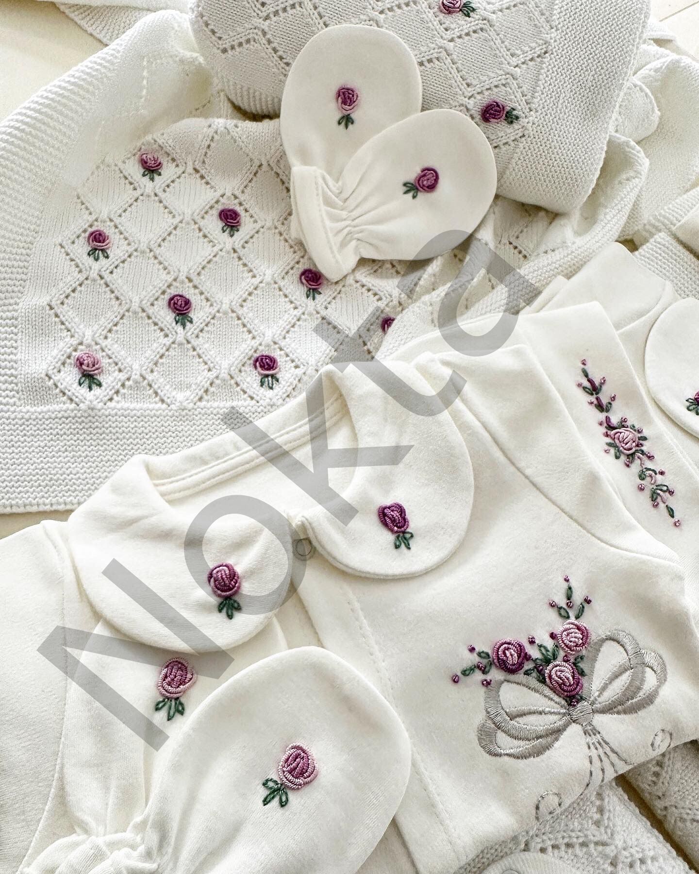 Zanaatkarlık: Tasarım üzerindeki dikiş detayları, Fiyonk Hastane Çıkış Bebek Set estetiğini yansıtan inovatif teknikler ile bebek sağlığına uygun güvenli üretim süreçlerinin kombinasyonu ile uygulanmıştır.