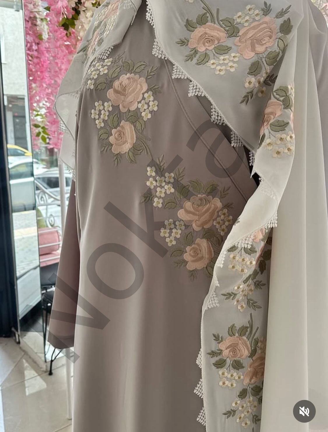 Güllü Model Namaz Elbisesi Seti Baş Örtüsü: 1 Adet (Şifon Kumaş)