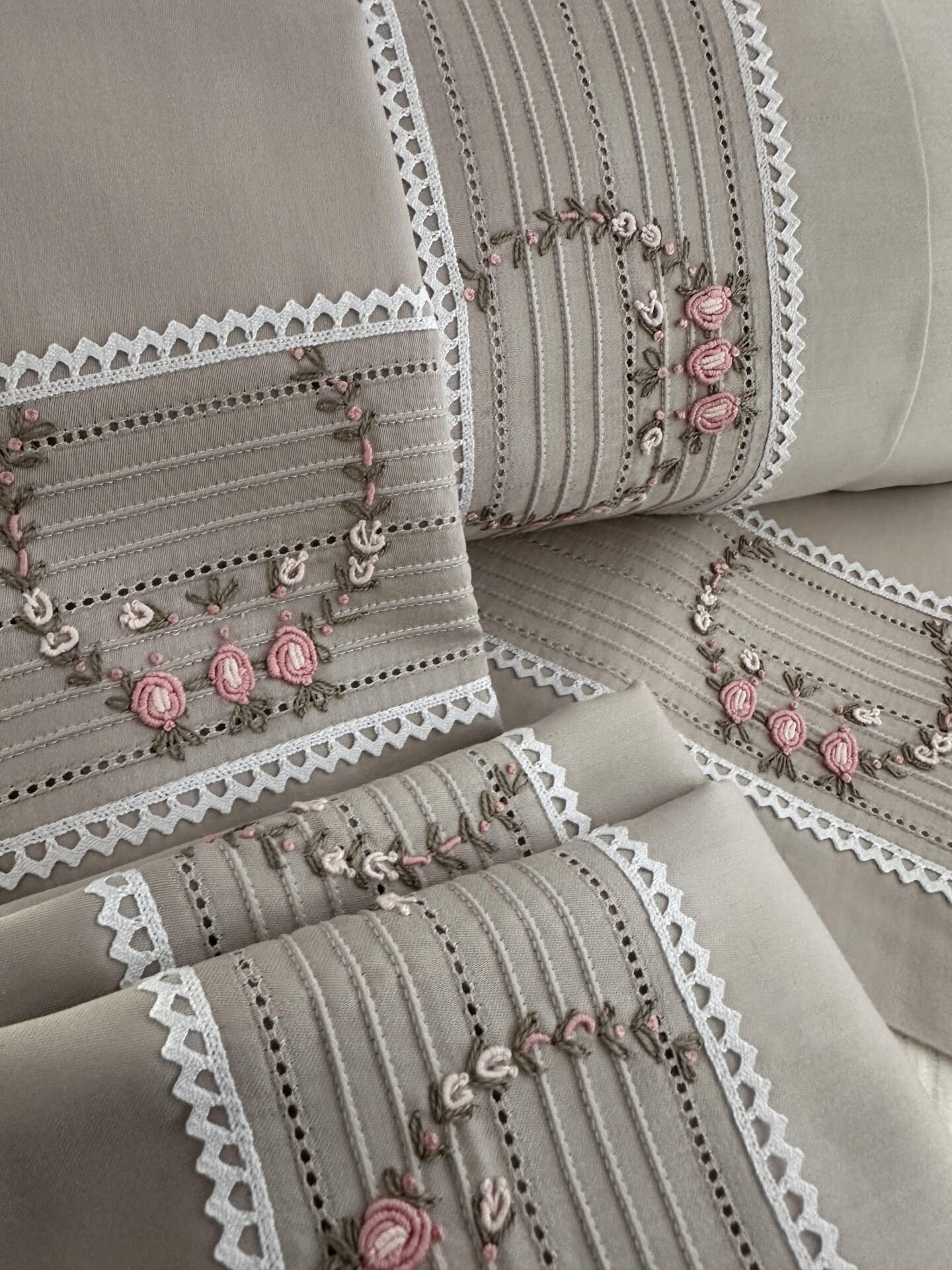 4 Adet Yastık Kılıfı: 50 × 70 cm – El işçiliği detaylarıyla zarafeti tamamlar.